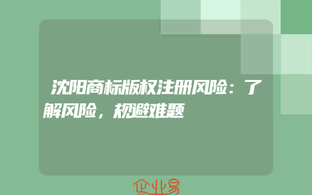 - 沈阳商标版权注册风险:了解风险,规避难题