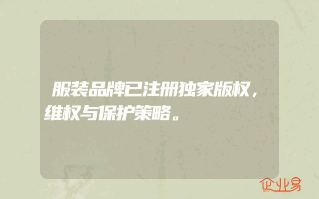 - 服装品牌已注册独家版权,维权与保护策略解析一、独家版权注册背景及意义随着时尚产业的迅速发展,服装品牌成为知识产权领域的重要组成部分。为了保护原创设计、品牌形象及市场利益,许多服装品牌积极注册独家版权。这不仅是对自身创新成果的保护,更是对整个