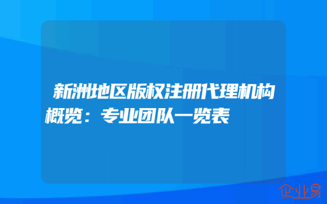 - 新洲地区版权注册代理机构概览:专业团队一览表