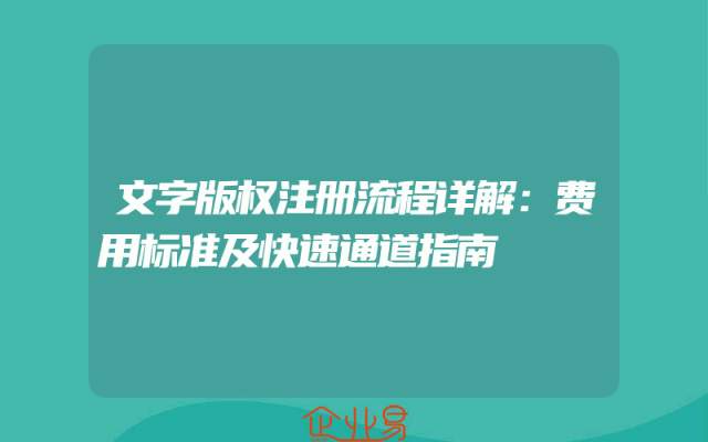 - 文字版权注册流程详解:费用标准及快速通道指南