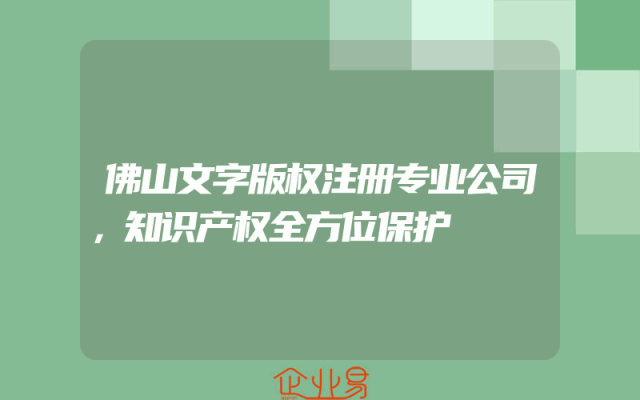 - 佛山文字版权注册专业公司,知识产权全方位保护
