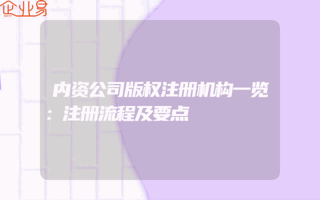- 内资公司版权注册机构一览:注册流程及要点解析一、版权注册机构概述随着知识产权保护意识的提高,越来越多的内资公司开始重视版权注册工作。选择合适的版权注册机构是完成版权保护的首要任务。当前国内市场存在多家专业的版权注册机构,为内资公司提供便捷、