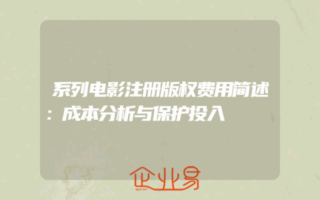 - 系列电影注册版权费用简述:成本分析与保护投入