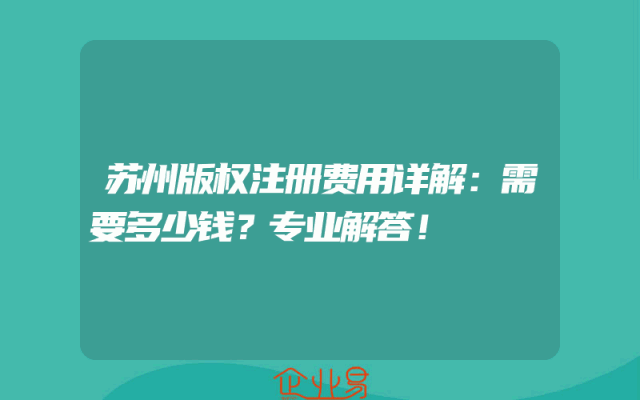 - 苏州版权注册费用详解:需要多少钱?专业解答!