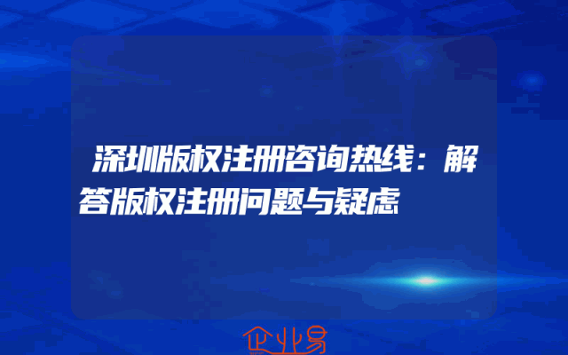 - 深圳版权注册咨询热线:解答版权注册问题与疑虑