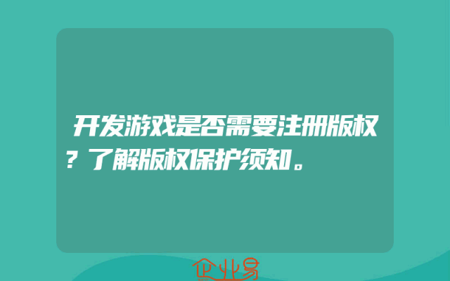 - 开发游戏是否需要注册版权?了解版权保护须知。