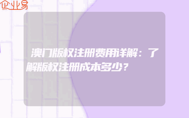 - 澳门版权注册费用详解:了解版权注册成本多少?