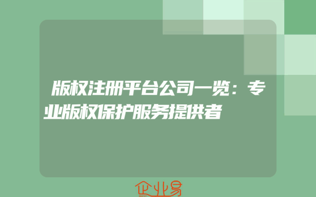 - 版权注册平台公司一览:专业版权保护服务提供者