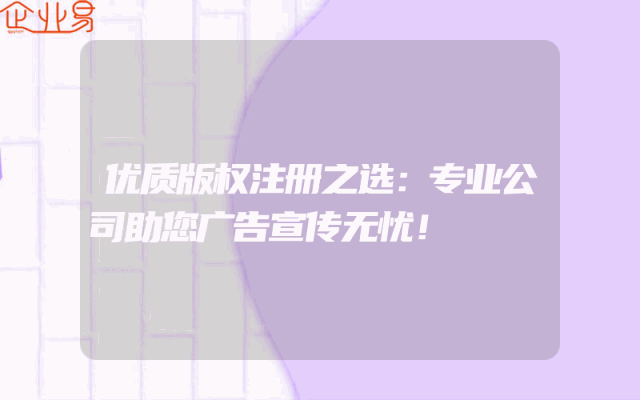 - 优质版权注册之选:专业公司助您广告宣传无忧!