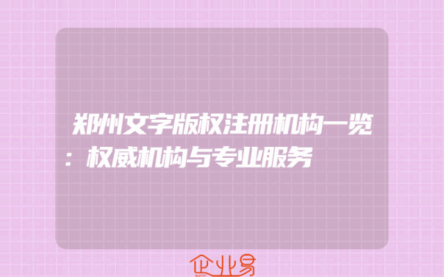 - 郑州文字版权注册机构一览:权威机构与专业服务