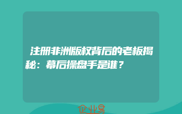 - 注册非洲版权背后的老板揭秘:幕后操盘手是谁?