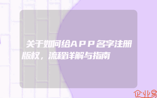 - 关于如何给APP名字注册版权,流程详解与指南