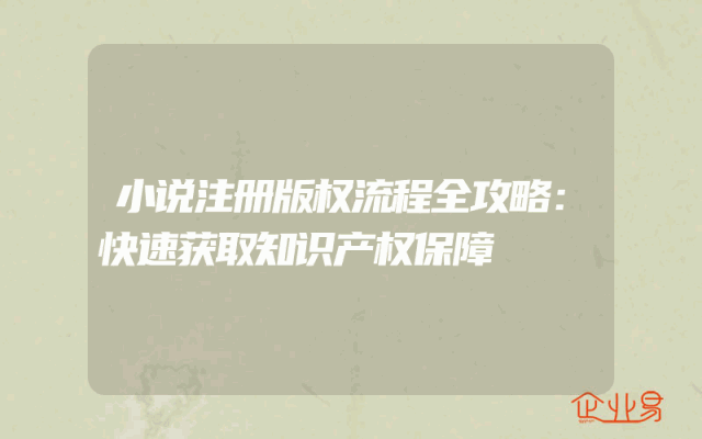 - 小说注册版权流程全攻略:快速获取知识产权保障
