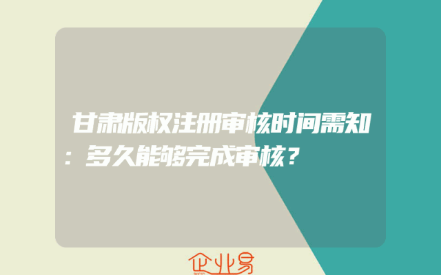 - 甘肃版权注册审核时间需知:多久能够完成审核?