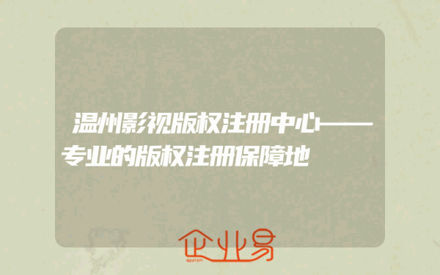 - 温州影视版权注册中心——专业的版权注册保障地一、中心概述温州影视版权注册中心作为专业的版权注册机构,致力于为广大影视从业者提供全方位的版权保护服务。随着影视行业的蓬勃发展,版权问题日益受到关注,该中心应运而生,为影视作品的创作者和投