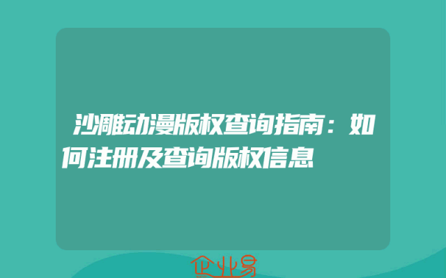 - 沙雕动漫版权查询指南:如何注册及查询版权信息
