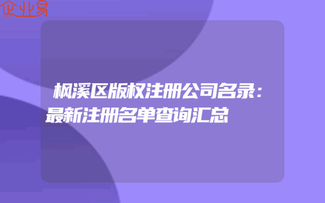 - 枫溪区版权注册公司名录:最新注册名单查询汇总