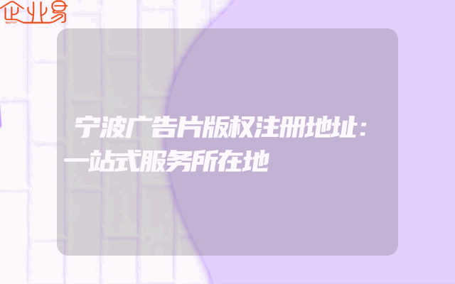 - 宁波广告片版权注册地址:一站式服务所在地