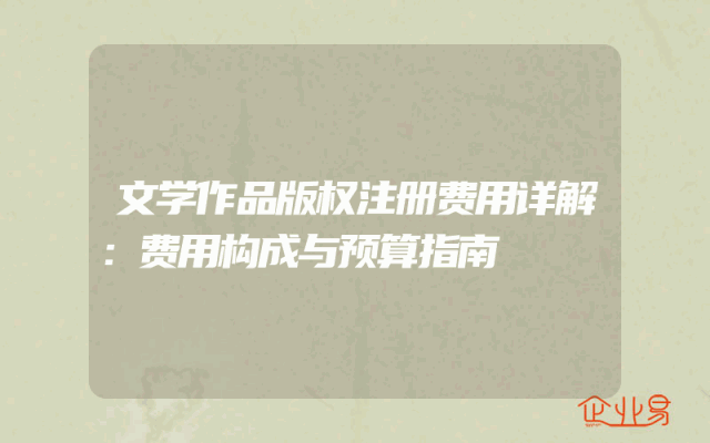 - 文学作品版权注册费用详解:费用构成与预算指南