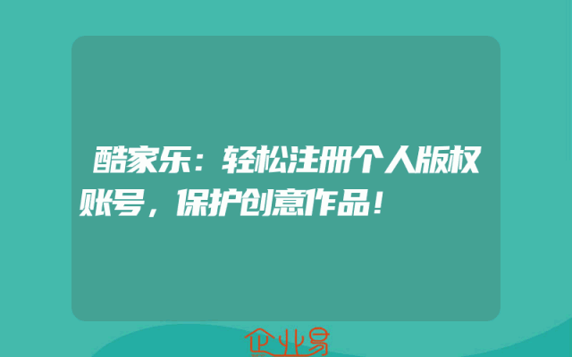 - 酷家乐:轻松注册个人版权账号,保护创意作品!