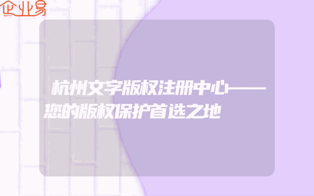 - 杭州文字版权注册中心——您的版权保护首选之地