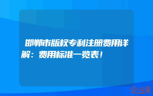 - 邯郸市版权专利注册费用详解:费用标准一览表!