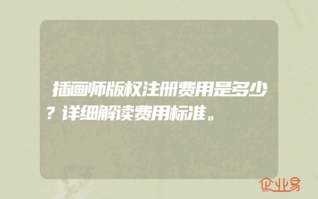 - 插画师版权注册费用是多少?详细解读费用标准。