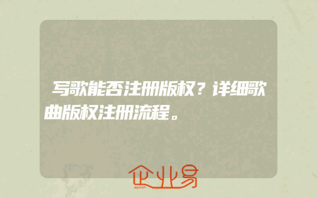- 写歌能否注册版权?详细歌曲版权注册流程。