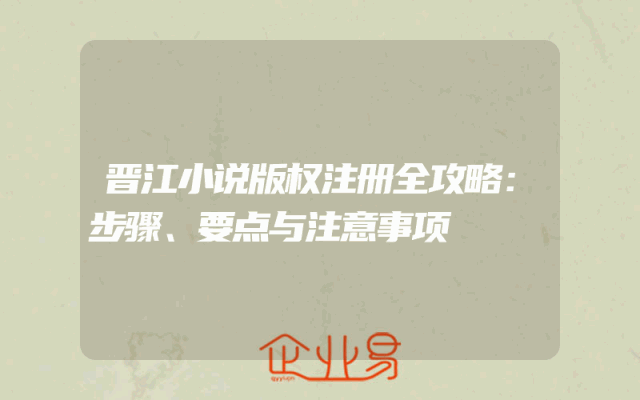 - 晋江小说版权注册全攻略:步骤、要点与注意事项