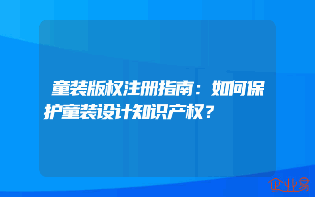 - 童装版权注册指南:如何保护童装设计知识产权?