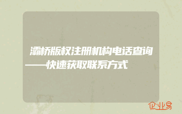 - 灞桥版权注册机构电话查询——快速获取联系方式