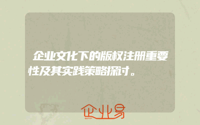 - 企业文化下的版权注册重要性及其实践策略探讨。