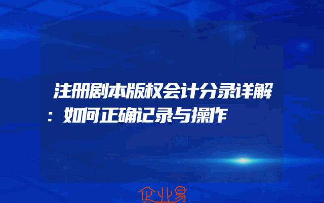 - 注册剧本版权会计分录详解:如何正确记录与操作一、了解剧本版权与会计分录在当今的版权保护时代,保护原创剧本的版权显得尤为重要。对于知识产权从业者来说,了解如何正确记录与操作剧本版权的会计分录也是一项必备