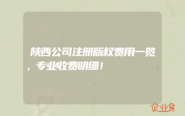 - 陕西公司注册版权费用一览:专业解析收费明细一、陕西公司注册版权概述陕西地区的企业在注册版权时,需要了解相关的费用明细。版权注册费用涉及多个方面,包括申请费、登记费、证书费等。了解这些费用对于企业和创作者来说都是重要的,能够帮助其更好地保护自