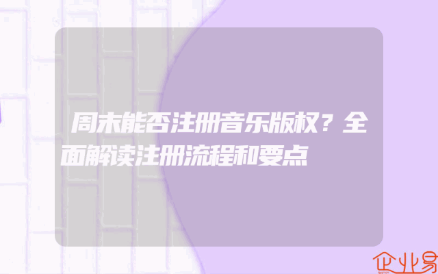 - 周末能否注册音乐版权?全面解读注册流程和要点一、周末是否可以注册音乐版权首先,我们需要明确一点,音乐版权的注册并不受工作日限制。无论是周末还是工作日,只要符合相关条件和要求,都可以进行音乐版权的注