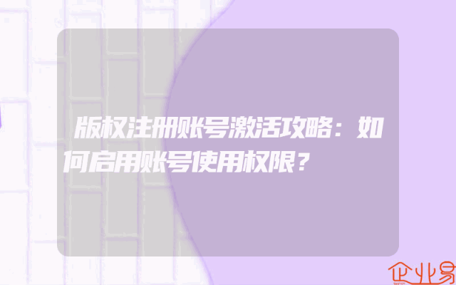 - 版权注册账号激活攻略:如何启用账号使用权限?