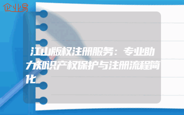 - 江山版权注册服务:专业助力知识产权保护与注册流程简化