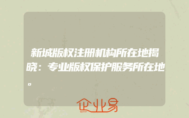 - 新城版权注册机构所在地揭晓:专业版权保护服务所在地。