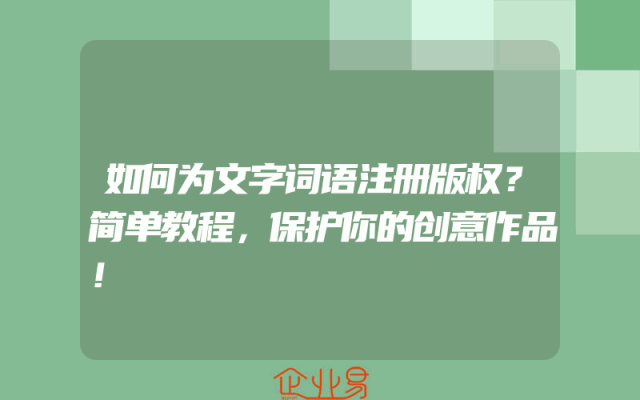 - 如何为文字词语注册版权?简单教程,保护你的创意作品!