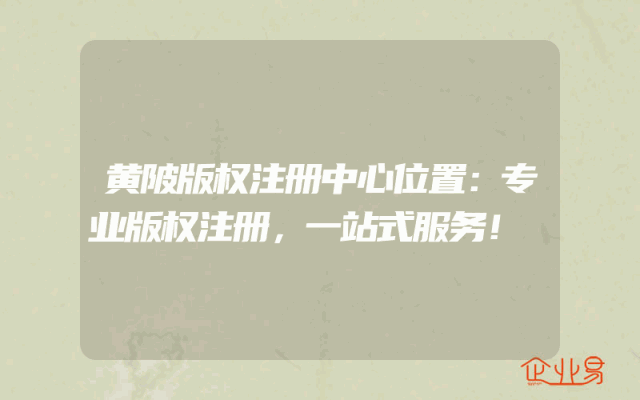 - 黄陂版权注册中心位置:专业版权注册,一站式服务!