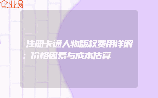 - 注册卡通人物版权费用详解:价格因素与成本估算