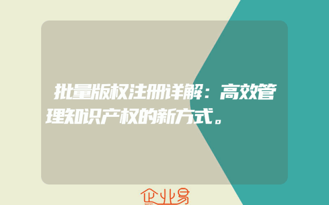 - 批量版权注册详解:高效管理知识产权的新方式。
