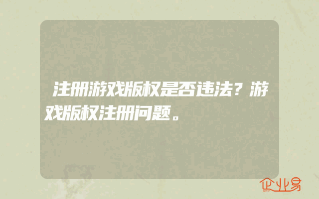 - 注册游戏版权是否违法?游戏版权注册问题。