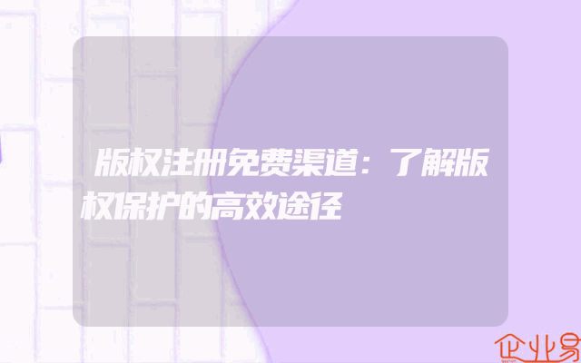 - 版权注册免费渠道:了解版权保护的高效途径