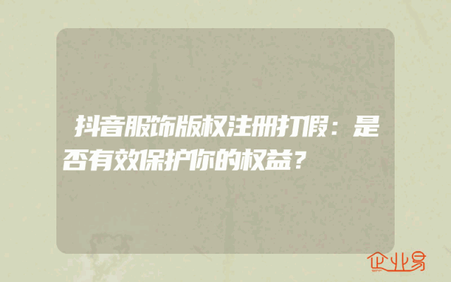 - 抖音服饰版权注册打假:是否有效保护你的权益?