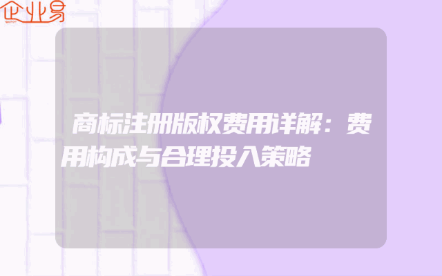 - 商标注册版权费用详解:费用构成与合理投入策略