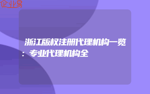 - 浙江版权注册代理机构一览:专业代理机构全