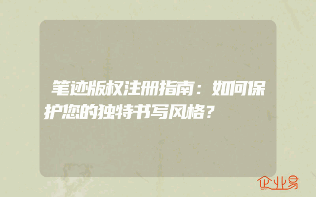 - 笔迹版权注册指南:如何保护您的独特书写风格?一、了解笔迹版权的重要性在当今社会,知识产权的保护日益受到重视,笔迹作为个人创作的一部分,同样需要得到保护。独特的书写风格是创作者个人特色的体现,具有极高的价值。因此,注册笔迹版权,对于保护个人创