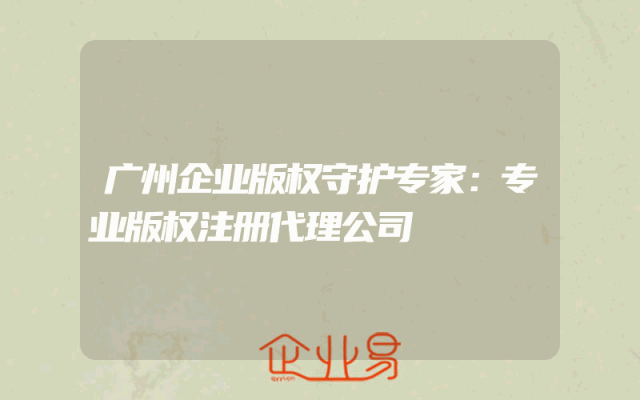 - 深圳企业版权守护专家:专业版权注册代理公司