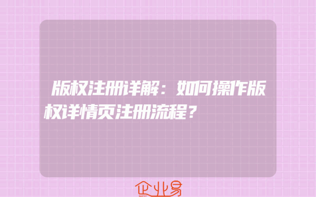 - 版权注册详解:如何操作版权详情页注册流程一、了解版权注册的重要性在知识产权领域,版权作为其中的一项重要内容,对创作者而言具有极其重要的保护意义。随着互联网的普及和信息技术的发展,保护原创作品的需求愈发凸显。版权注册不仅能够维护创作者的合法权
